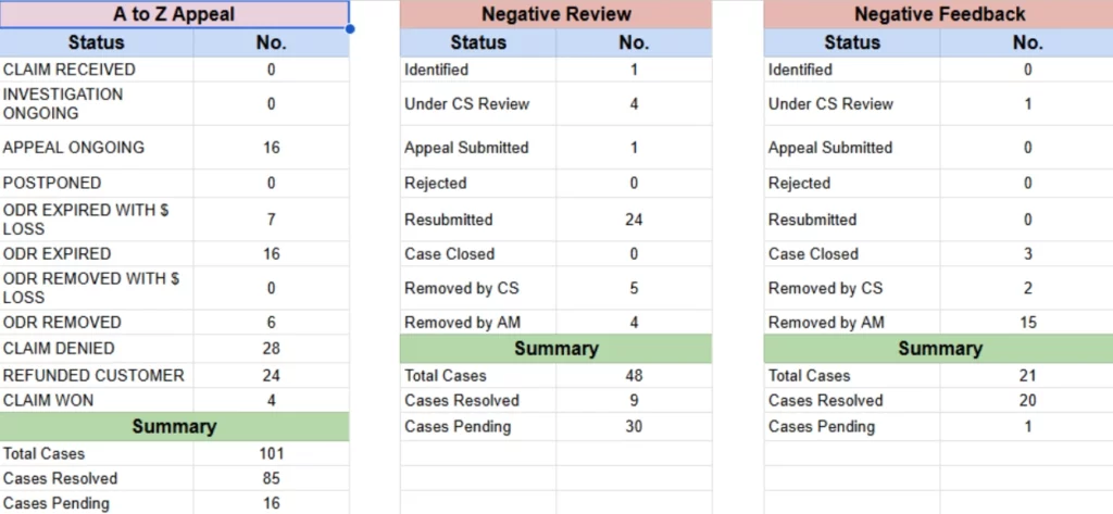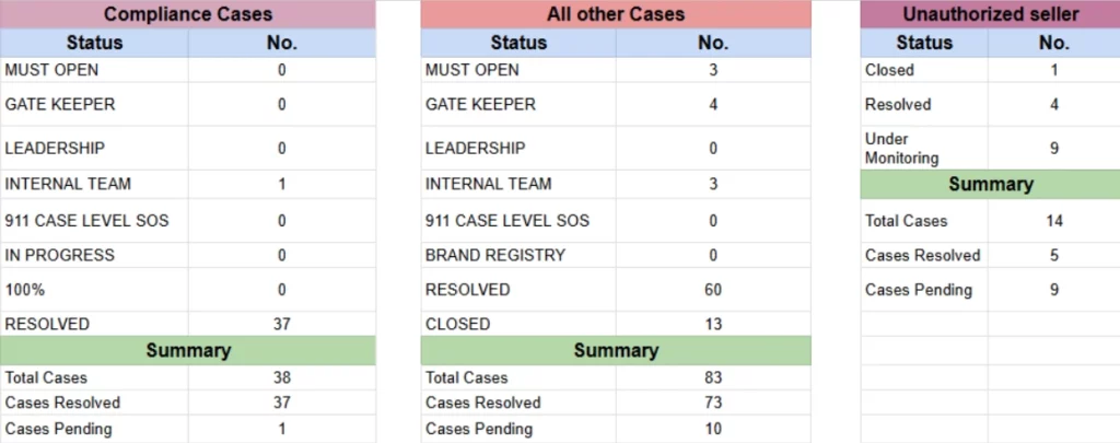 Across the year, we actively tracked and managed compliance cases, A-to-Z claims and appeals, negative feedback and review issues, and unauthorized seller incidents.