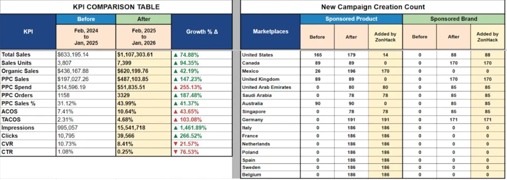 - PPC Sales: $197,027.26 → $487,103.85 (+147.23%)